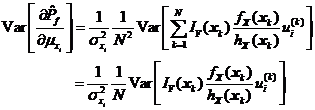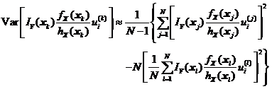 采用式和對可靠性試驗靈敏度進行估計是近似的,它的取值在樣本容量較小時有很大的隨機性,但依據(jù)大數(shù)定理,上述兩式的估計值隨樣本容量的增加逐漸趨近于真值。為了對式和估計量的統(tǒng)計特征有清楚的了解,進而了解重要抽樣可靠性試驗靈敏度估計方法的收斂性和精度,有必要對其估計值進行方差分析。對式求數(shù)學期望和方差可得式和。
