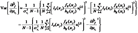 同理,可得失效概率對標準差的靈敏度估計值的數(shù)學期望和方差。