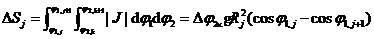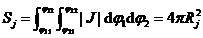 其中為以為半徑的球的表面積,為以為高度的微棱錐在球面上部分的面積,可分別由式和式求得。