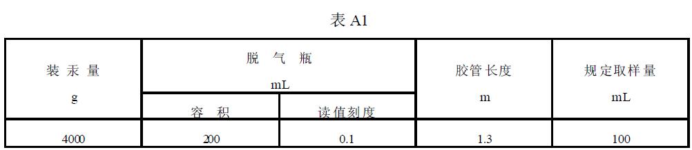 儀器由盛汞的基準(zhǔn)瓶、膠管、脫氣瓶、三通閥和二通閥組成。見圖A1、表A1。